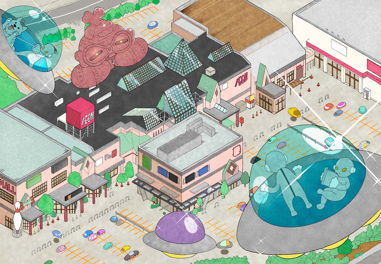 つがる市は自然が多く、この落ち着いた住みやすい環境が私は大好きなので、この環境のまま、さらに農業が発展し、住む人がたくさん増えるよう、つがる市の特産物のメロンをカフェにし、ドローンタクシーで、つがる市の自然をたくさんの人に見てもらえたら良いなと思い描きました。